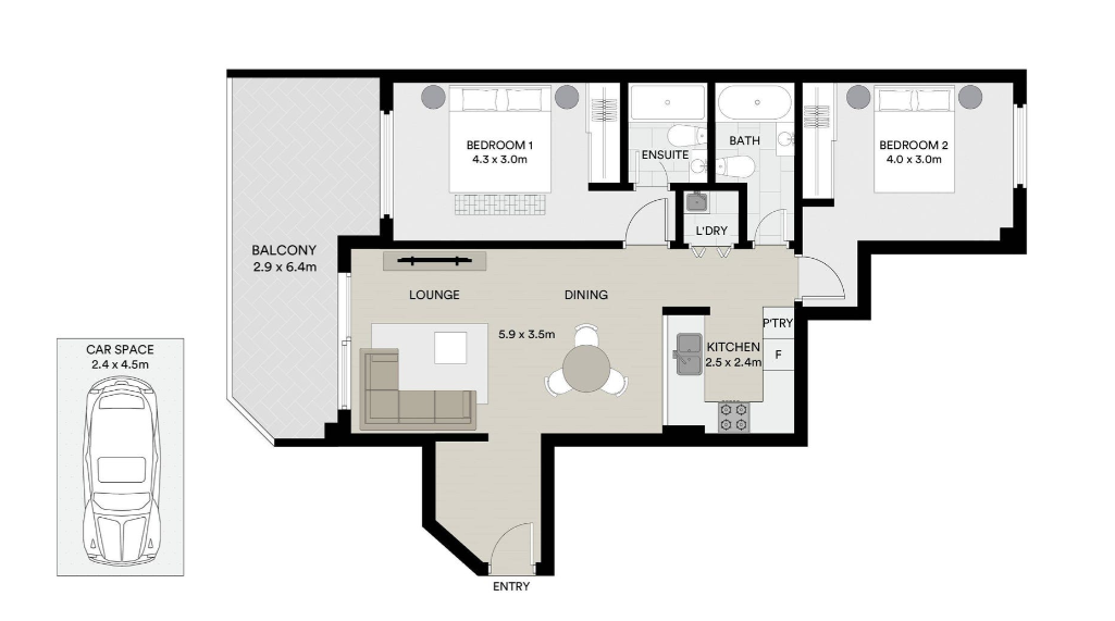 - Secure intercom entry, internal laundry with built-in storage